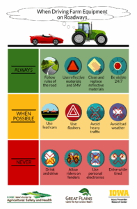 The fall 2025 campaign focused on equipment lighting and marking to reduce the risk of rural roadway crashes. Harvest season means that there will be more farm vehicles on the road, and motorists need to recognize that and exercise patience. Farmers will want to make sure all vehicle lights are operating and ensure that farm vehicles are clearly marked with a Slow-moving vehicle (SMV) emblem.